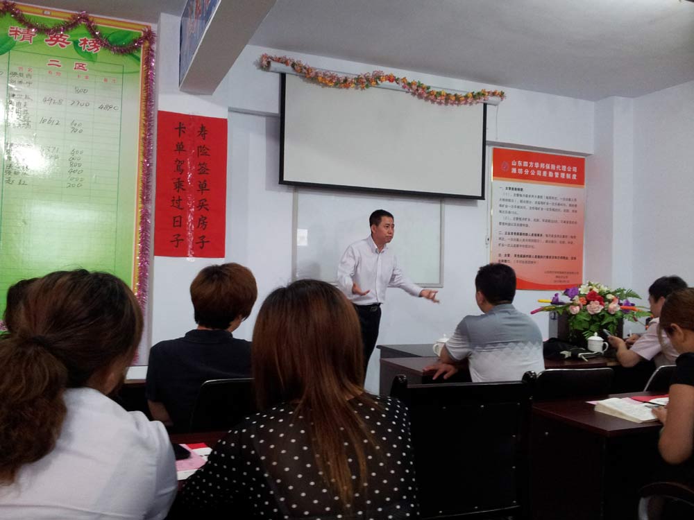 2013年6月中下旬,中荷人壽山東分公司總經(jīng)理方光維先生與副總張恒柱,由我們總公司的兩位領(lǐng)導(dǎo)陪同,一起到我們的機構(gòu)兌現(xiàn)了“中荷方總授課”的獎勵方案。