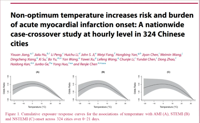 國(guó)內(nèi)一研究團(tuán)隊(duì)基于國(guó)內(nèi)心血管健康-胸痛中心數(shù)據(jù)庫(kù),開展了一項(xiàng)溫度與急性心梗發(fā)作的流行病學(xué)研究,并于2023年6月將研究結(jié)果在線發(fā)表于《柳葉刀》子刊 EClinicalMedicine上。