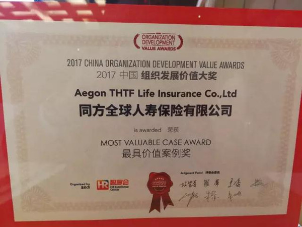 近年來,同方全球人壽在產(chǎn)品創(chuàng)新方面持續(xù)發(fā)力的同時(shí),在人力資源發(fā)展專業(yè)領(lǐng)域中也有所斬獲!近日,于上海舉行的“2017中國組織發(fā)展價(jià)值大獎(jiǎng)”頒獎(jiǎng)典禮,同方全球人壽公司憑借“變焦 變速 變革-打造企業(yè)快速發(fā)展”的企業(yè)變革實(shí)踐案例所體現(xiàn)的專業(yè)、嚴(yán)謹(jǐn)、全面、創(chuàng)新、高效,從近兩百家候選企業(yè)中脫穎而出,并一舉榮獲“最具價(jià)值案例獎(jiǎng)”。