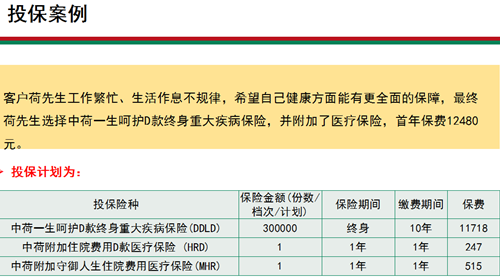 中荷一生呵護(hù)D款終身重大疾病保險(xiǎn)(DDLD)