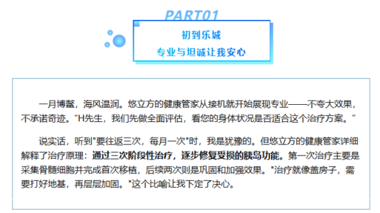 “如果繼續(xù)這樣,未來五年內(nèi)出現(xiàn)并發(fā)癥的風(fēng)險(xiǎn)會(huì)很高?!?/span>醫(yī)生的話像一記重錘。10年糖尿病史,從口服藥到胰島素,血糖儀上的數(shù)字成了我每天的晴雨表。當(dāng)女兒提起博鰲樂城的干細(xì)胞治療時(shí),我的第一反應(yīng)是抗拒——“抽骨髓?太嚇人了。”